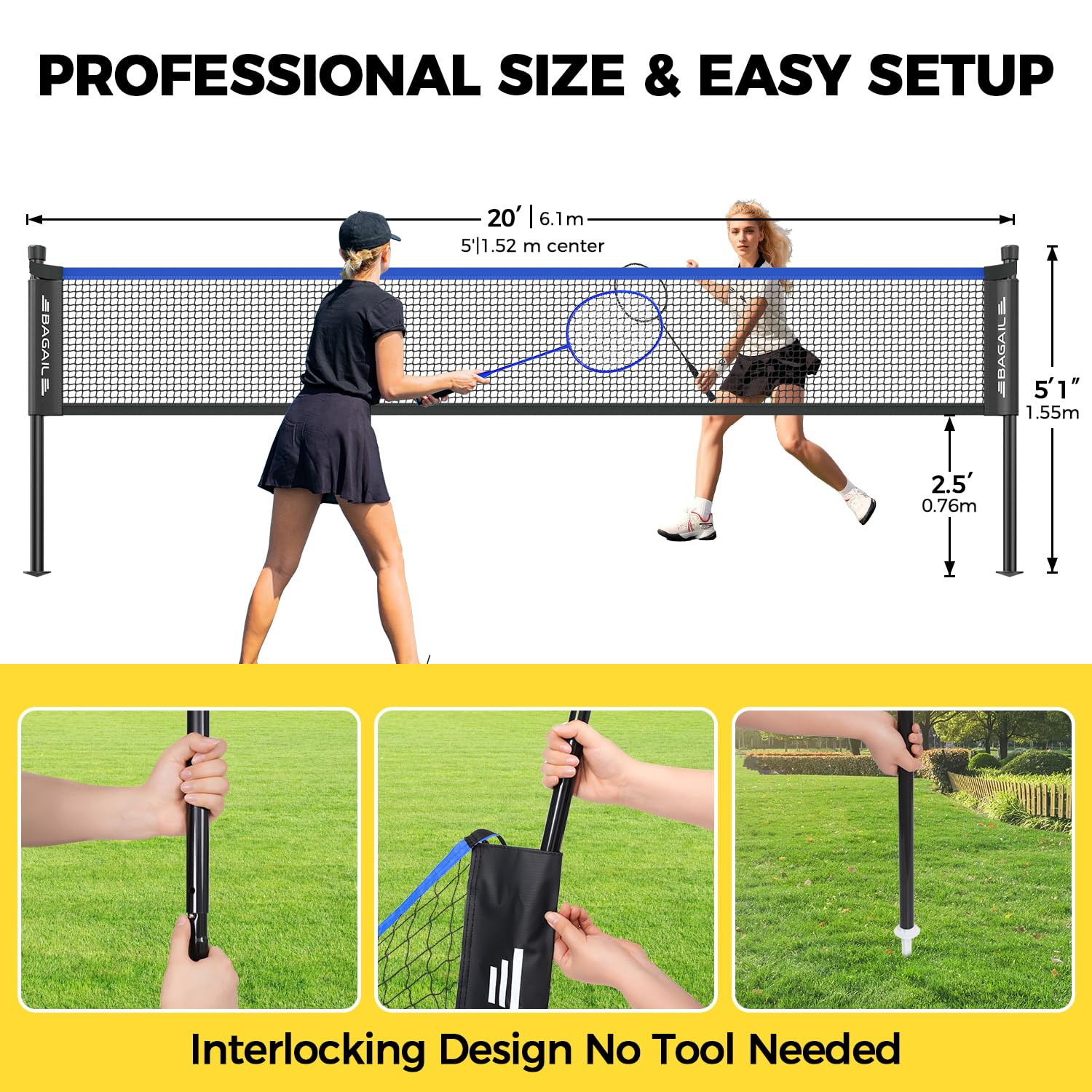 BAGAIL Outdoor Badminton Net Set with Anti-Sag Winch System – Official Size 20ft x 5ft, 4 Rackets, 3 Shuttlecocks, Durable PE Net & Carry Bag for Backyard, Beach, Family Games